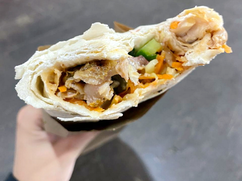 Признаётся: самый популярный заказ у неё - шаурма классическая. В ее составе та самая маринованная говядина, собственноручно малосольные огурчики, корейские салатики и секретный соус. А ещё можно выбрать степень «прожарки». Настоятельно советует выбрать самую хрустящую корочку. Это и делаем.