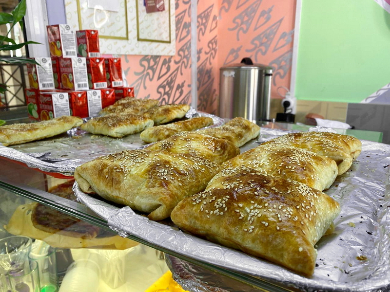 Здесь можно взять уже готовые блюда как в обычной столовой или попросить приготовить что-то по меню. Из необычного – есть несколько вариантов шурпы, суп по-казахски с говядиной, блюдо из риса, картофеля и курицы нахора и даже борщ. Все блюда стоят по 150-250 рублей.