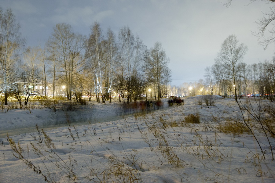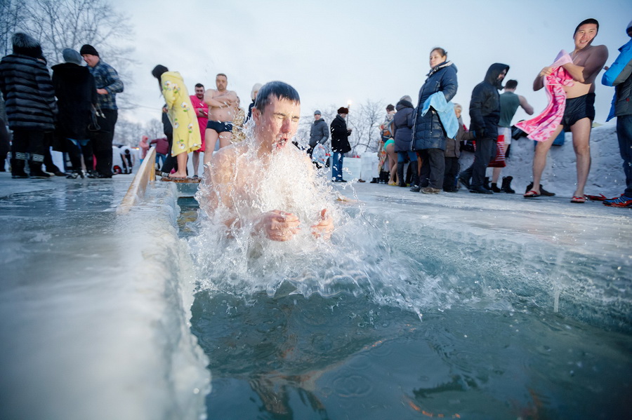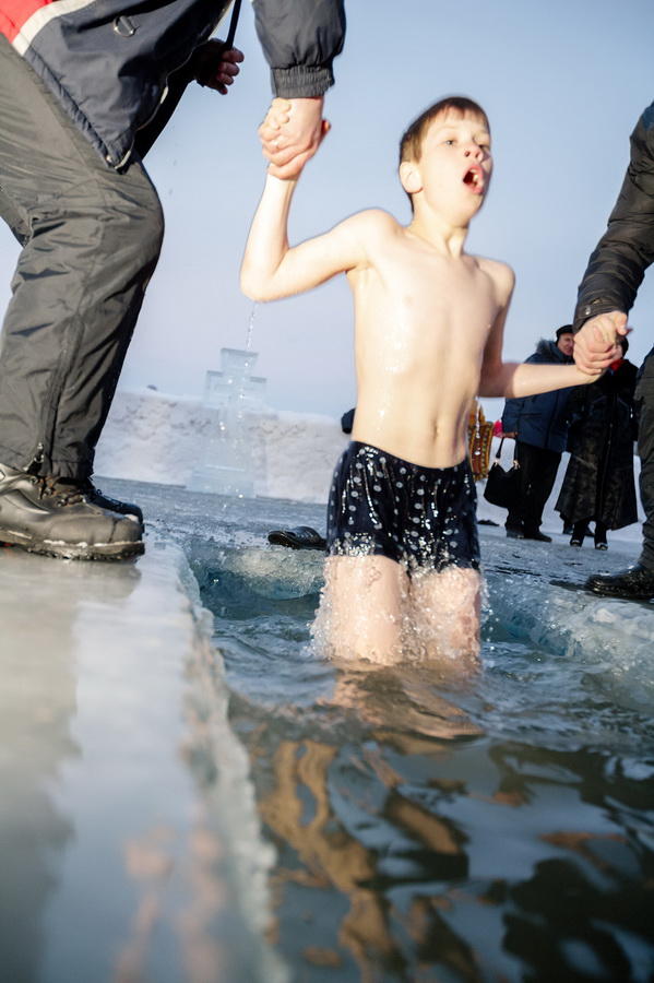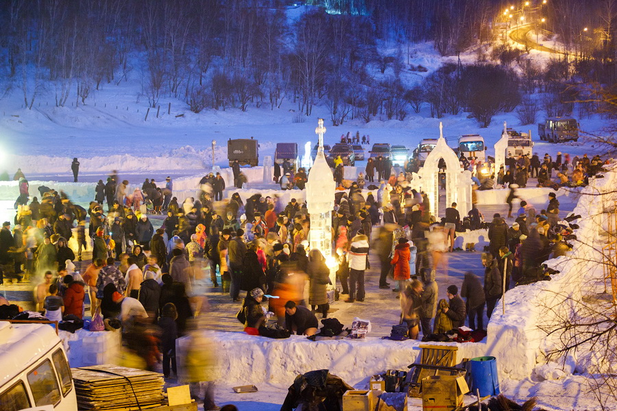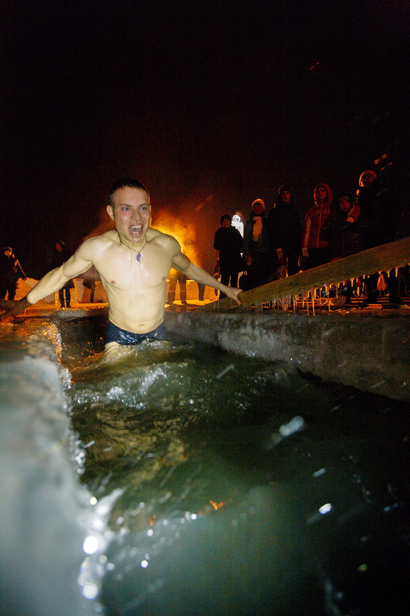 В праздник Крещения Господня по всей области в иордани окунулись больше 100 тысяч человек. Владимир Смирнов поехал на иркутский залив Якоби вечером, когда там собралось больше всего народа.