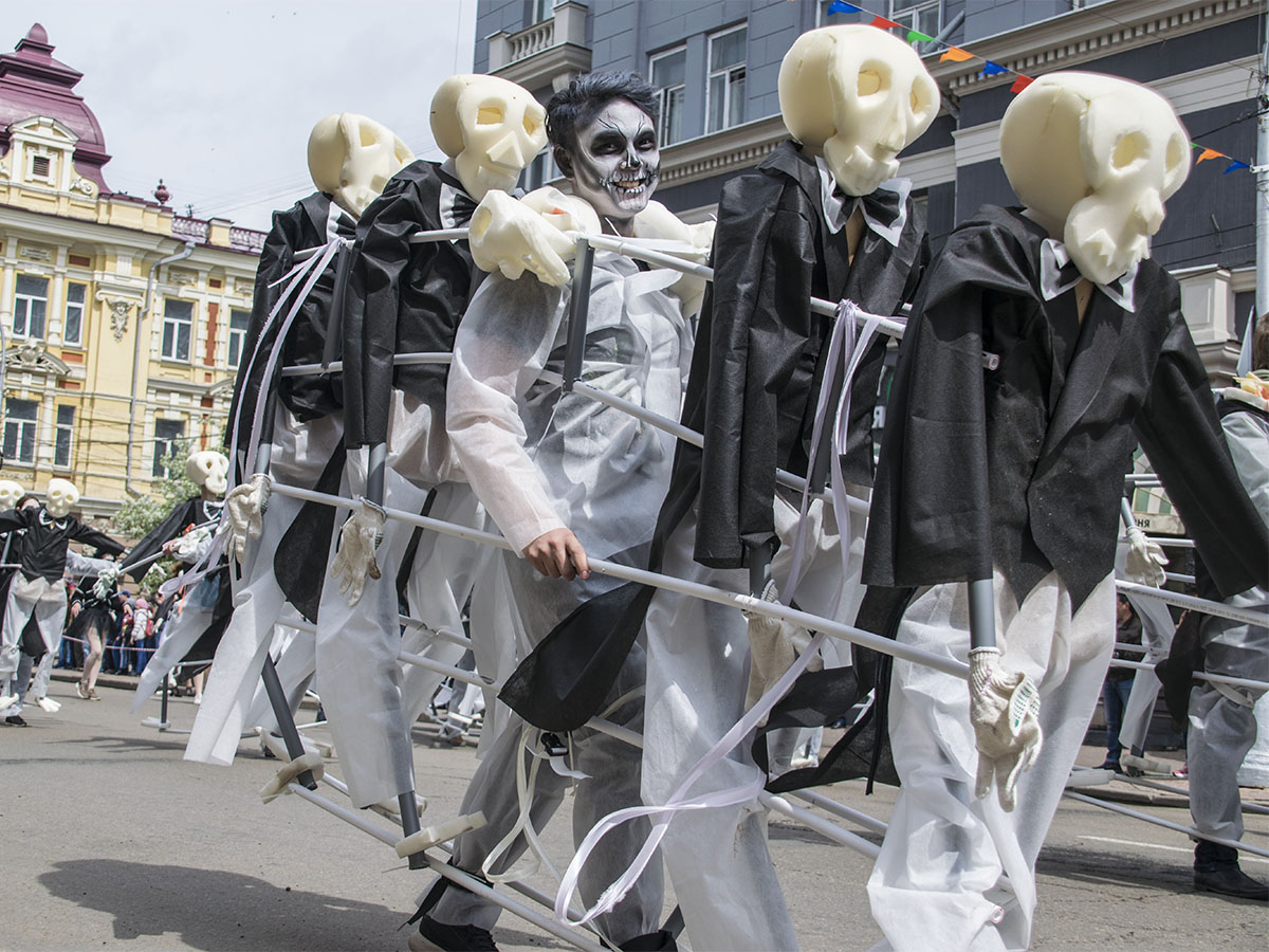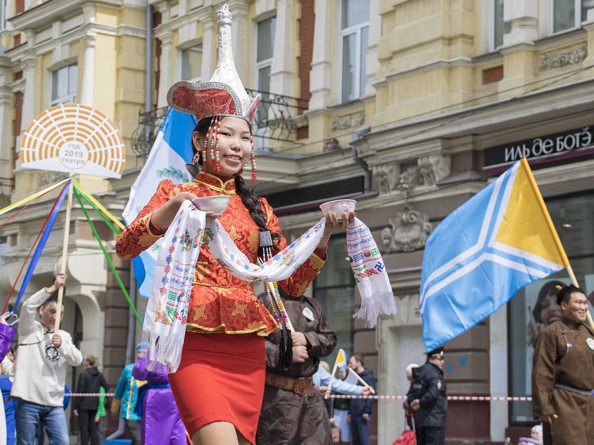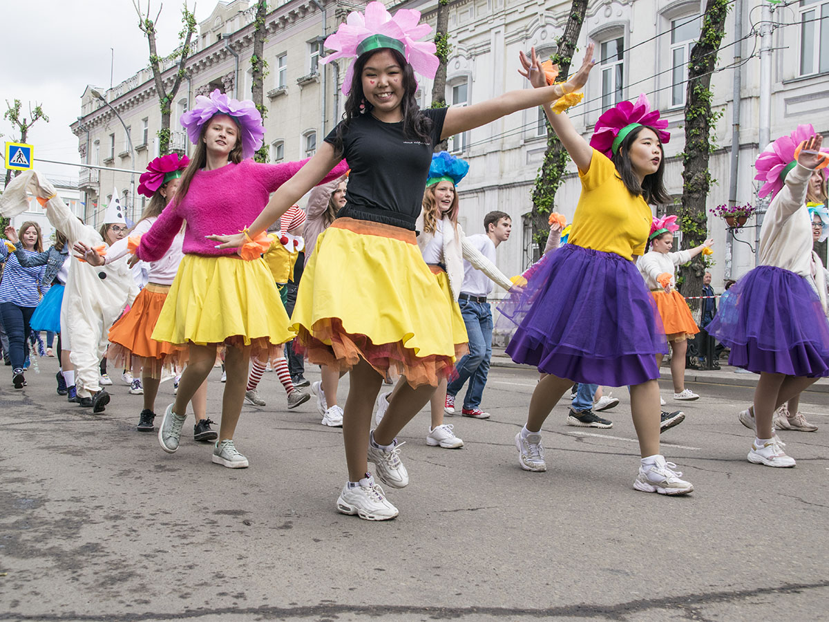В субботу, 1 июня, в Иркутске в рамках празднования Дня города состоялось традиционное костюмированное шествие «Театр в движении», в котором приняли участие более 50 колонн. Они прошли по улице Карла Маркса от пересечения с улицей Франк-Каменецкого до памятника Александру III.